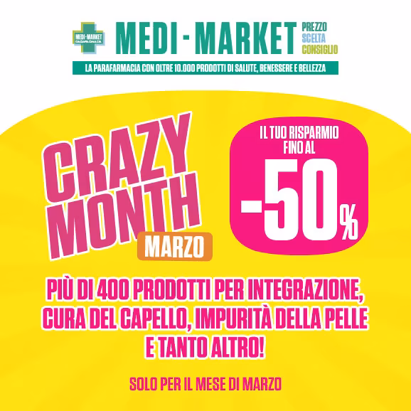 Medi-Market vuole essere la risposta giusta per il benessere, con vantaggi e massima trasparenza nei prezzi, vasto assortimento e una consulenza qualificata con oltre 10.000 prodotti a prezzi bassi tutto l’anno, oltre 300 marchi selezionati e un team specializzato.
